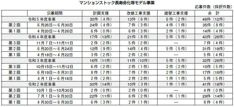 令和5年度は2回の公募で合計49件の応募があり、先導的再生モデルタイプの12件が採択されました。例年に比べて応募件数は増えましたが、採択された事業件数は過去最低となっています。