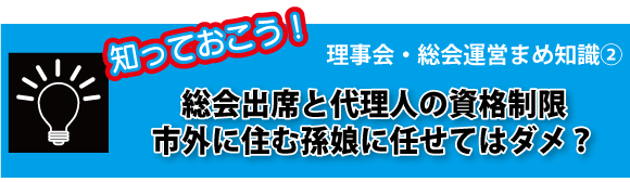 このため総会の出席についても、孫娘に委任状を持たせて、出てもらいました。ところが、①総会開催後の委任状の提出、②代理人の資格なしという理由で議決権の数に入れず、賛成も反対もできなかったそうです。