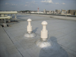 屋上でキノコみたいな形のものが突き出ているのが排水通気管です。屋上の防水層を貫通してできています。