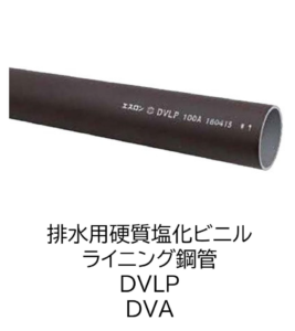 最近では、排水用硬質塩化ビニルライニング鋼管(DVLP、DVA)が使われるようになりました。これは内側にビニールを被覆している鉄の管です。