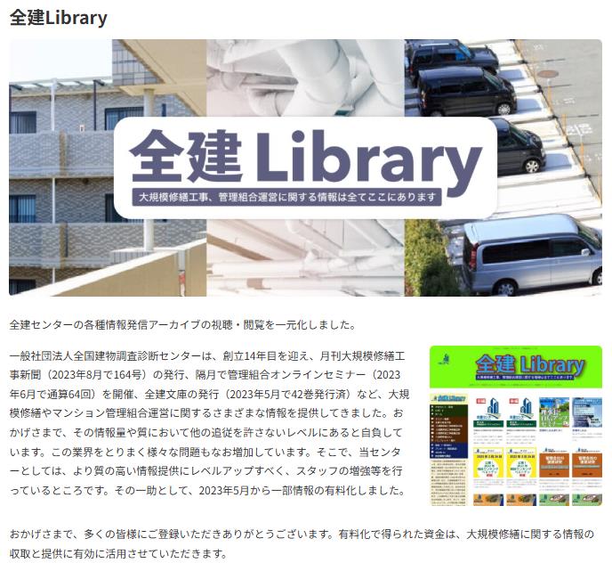 『マンションAI』の利用に際しては、全建Libraryのメンバー登録が必要です。未登録の方は全建センターホームページからご登録ください。