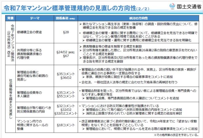 令和7年マンション標準管理規約の見直しの方法性》右表