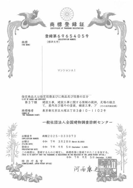全国建物調査診断センター 『マンションAI』を商標登録