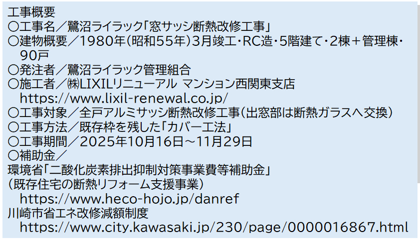 今後の修繕計画で必要な予算(資金繰り表)などを検討した結果、環境省の「二酸化炭素排出抑制対策事業費等補助金」(既存住宅の断熱リフォーム支援事業)を活用することとし、補助金対象ガラス「Low-E複層ガラス」のLIXIL製品を選択しました。