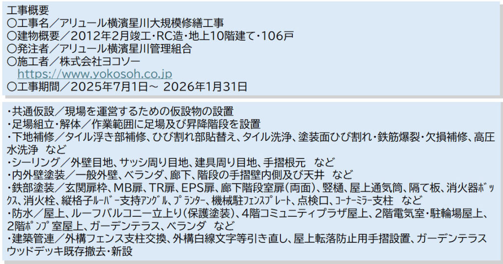 その他、住民対応も丁寧で、「理事会、修繕委員会と一緒の方向を見てくれた」というのが、工事終了後のヨコソーに対する印象でした。
