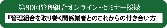 一般社団法人全国建物調査診断センターが4月26日に配信開始した第80回管理組合オンライン・セミナーを抜粋・採録します。今回は、『管理組合を取り巻く関係業者とのこれからの付き合い方』をテーマに、一般社団法人マンション管理士総合研究所・代表理事の水島氏(マンション管理士)の講演の様子を紹介します。
