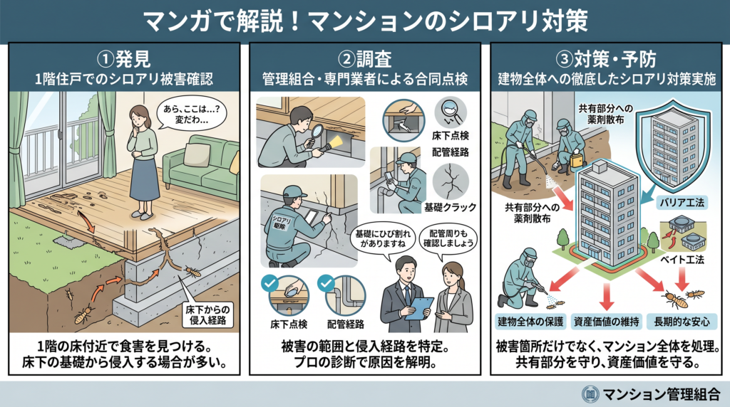 マンション1階にシロアリが発生。どう対応すればよい?