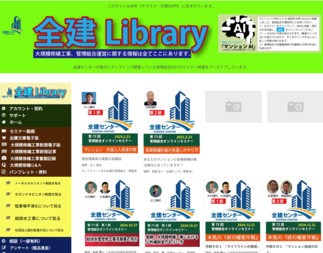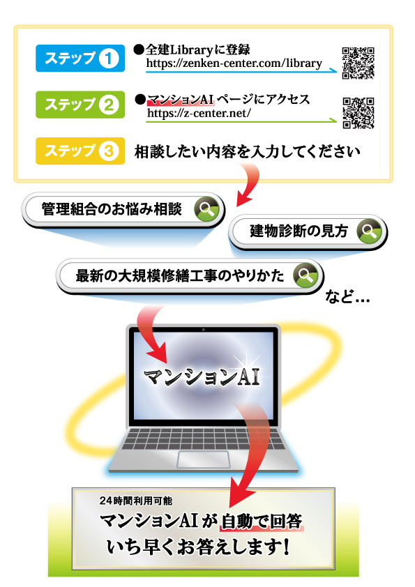 『マンションAI』の利用に際しては、全建Libraryのメンバー登録が必要です。未登録の方は全建センターホームページからご登録ください。