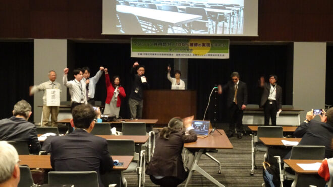 4月3日、参議院議員会館1階講堂で欠陥住宅被害全国連絡協議会(欠陥住宅全国ネット)とNPO全国マンション管理組合連合会(全管連)が「マンション共用部分の100%補修の実現を求める」第2回院内集会を開きました。その様子を取り上げます。まずは、弁護士、建築士、全管連メンバーによる寸劇から。