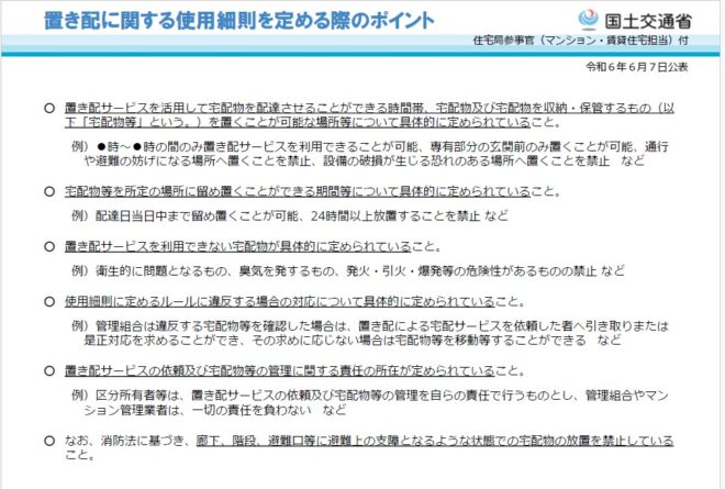 国土交通省による、マンション向け置き配のすすめ(使用細則の広