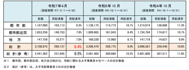 これによると、今年4月の再配達率が約8.4%となり、2022年の10月(約10.6%)と比べ約2.2ポイント減った。