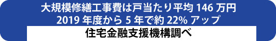 住宅金融支援機構調べ 大規模修繕工事費は戸当たり平均146万円 2019年度から5年で約22%アップ