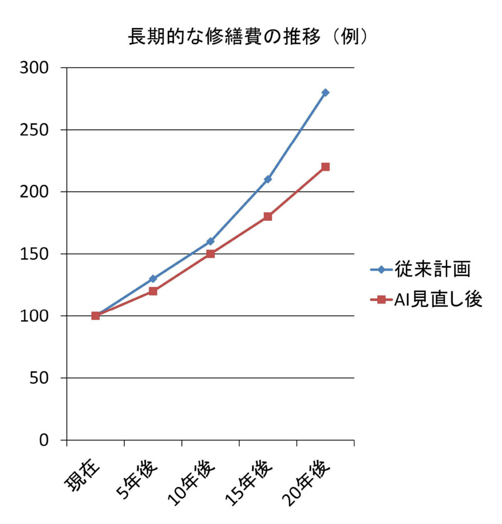 For example, rather than deciding to carry out major repair work because the building is 12 years old, what is the best time to do it for your apartment building when you consider the deterioration phenomenon and costs? It is possible to ask AI for multiple patterns of repair timing.