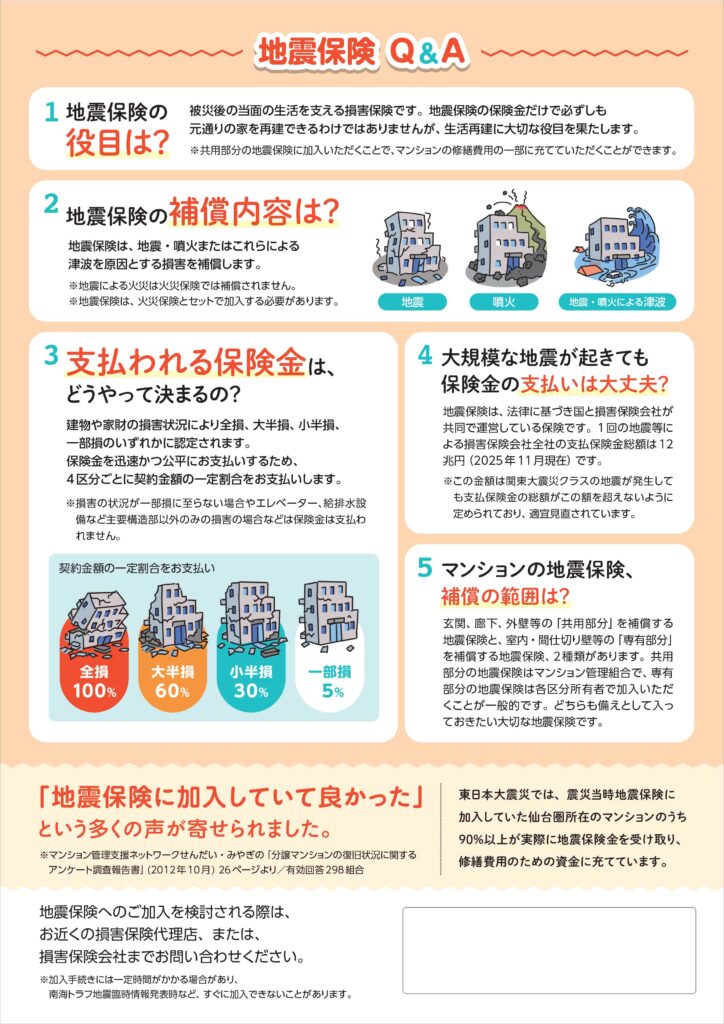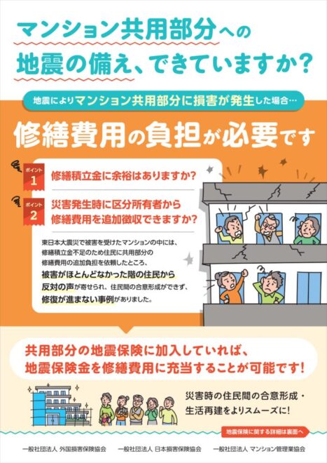 The Ministry of Finance, which operates the “Earthquake Insurance System” jointly with non-life insurance companies, is promoting enrollment in earthquake insurance for condominium management associations.