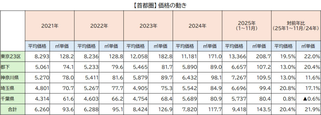 In terms of price trends, the average price in Tokyo's 23 wards for 2025 (January to November) is expected to be 133.66 million yen, with the price per square meter reaching 2,087,000 yen, continuing to set "record highs."