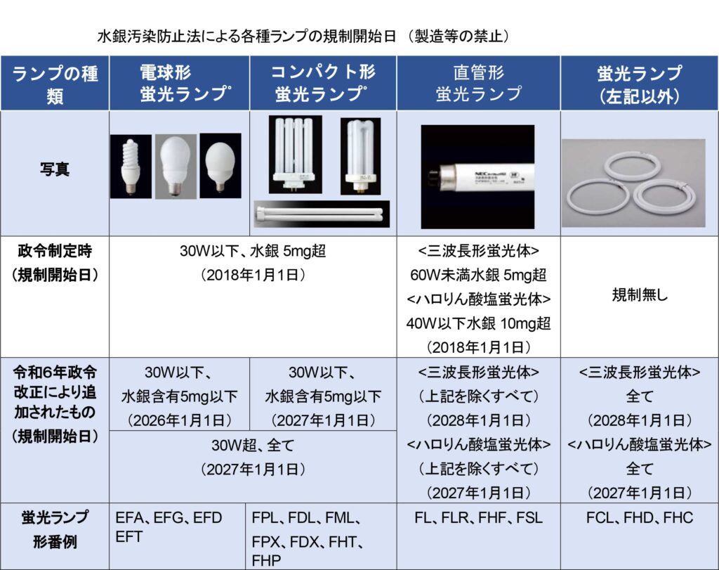 Following the decision of the Conference of the Parties to the Minamata Convention, the manufacture, import, and export of fluorescent lamps, which contain mercury, will be gradually restricted starting in January 2026. Restrictions on compact fluorescent lamps began on January 1, 2026.
